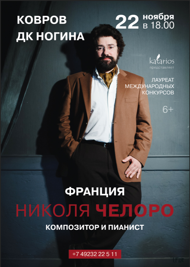 …27 ноября в 18:00 Николя Челоро выступит с сольным концертом в Доме культуры им. В. П. Ногина г. Коврова.