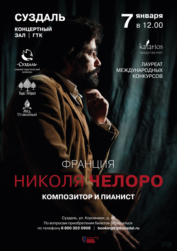 Французский композитор, которого многие ценители ставят в один ряд с выдающимися пианистами современности, даст концерт в Суздале. Николя Челоро готовит праздничное рождественское выступление. Каким оно будет? Накануне с музыкантом встретилась Кристина Иванова. (ГТРК «Владимир»)