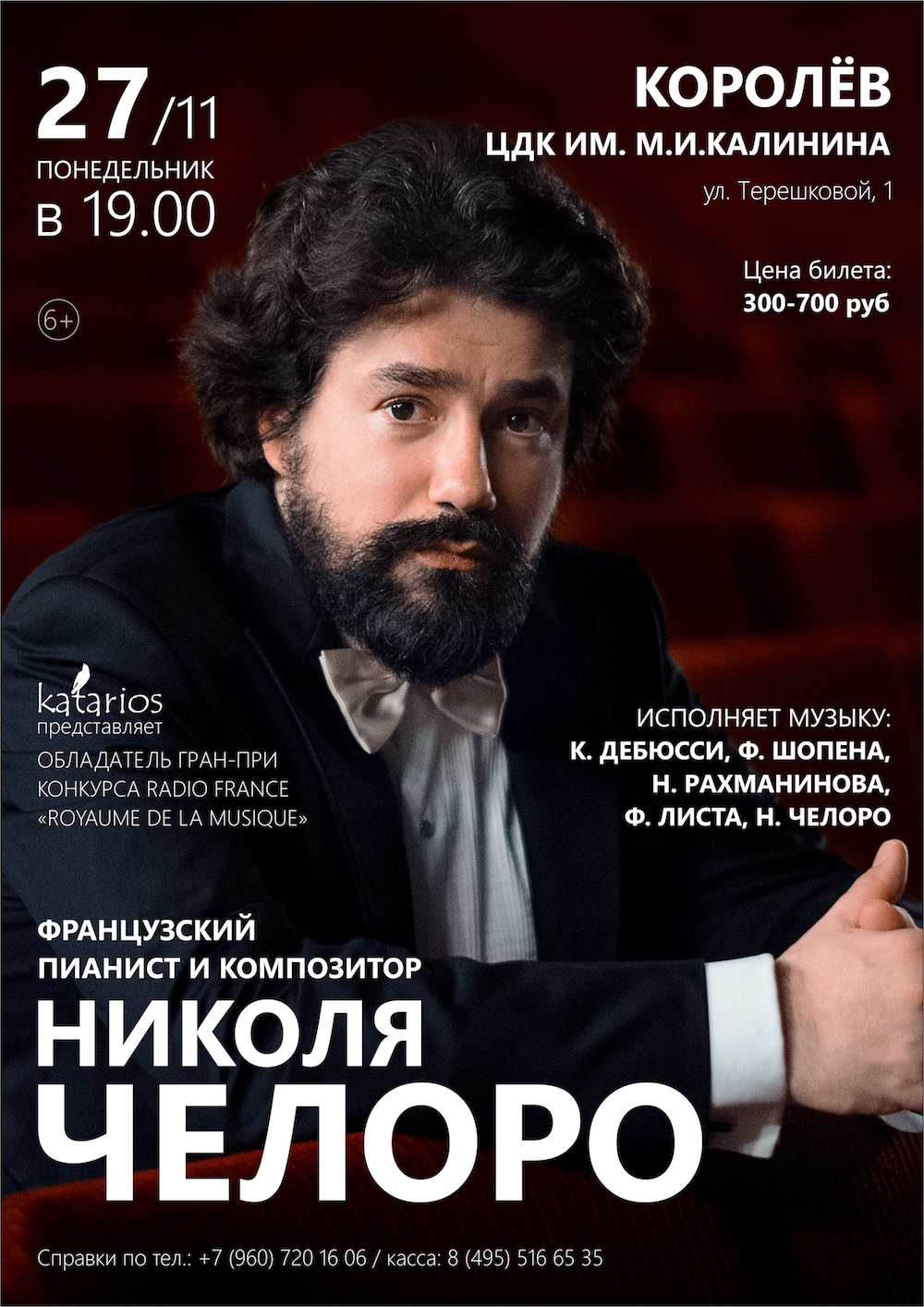 Николя Челоро выступит с сольным концертом в городе Королёве, в Центральном Дворце культуры.