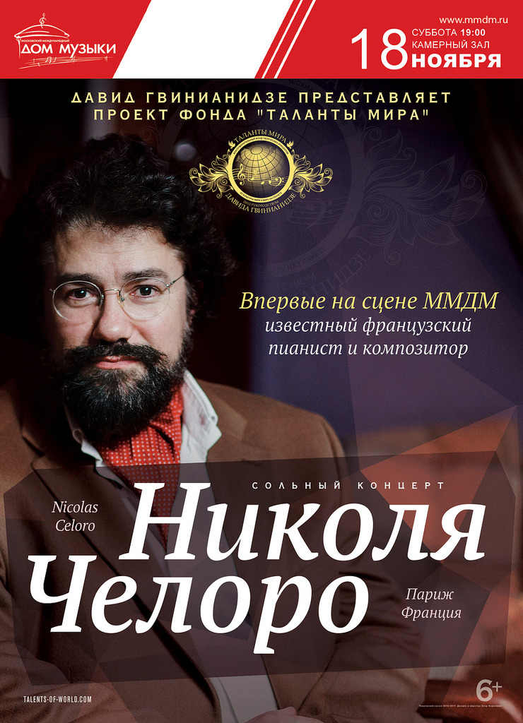 … Программа концерта Первое отделение Фредерик Шопен: Баллада No 3 ля бемоль мажор, ор. 47; Мазурка No 4 си минор, op. 33; Второе скерцо си минор, op. 31; Ноктюрн фа минор, ор. 55; Баллада No 4 фа минор, ор. 52; Полонез «Героический» ля бемоль мажор, ор.53. Антракт Второе отделение Сергей Рахманинов: Три прелюдии: — соль мажор, op. 32 n°5; — до диез минор, ор. 3 n°2; — соль минор, op. 23 n°5. Николя Челоро: Три прелюдии: — си минор; — до мажор; — фа диез мажор. Музыкальный момент до минор; Музыкальный момент до мажор; Головокружение.Трекбэк с Вашего сайта.